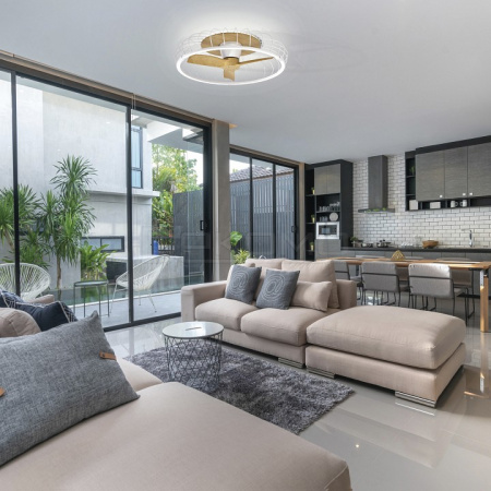 В выдержанном дизайне прослеживается влияние скандинавского стиля и его принцип идеального баланса. Коллекция идеально подходит для просторных гостиных и спален, благодаря своему тихому, но эффективному двигателю. Выразительный светильник NATURE сочетается со спокойным и размеренным интерьером и органикой.