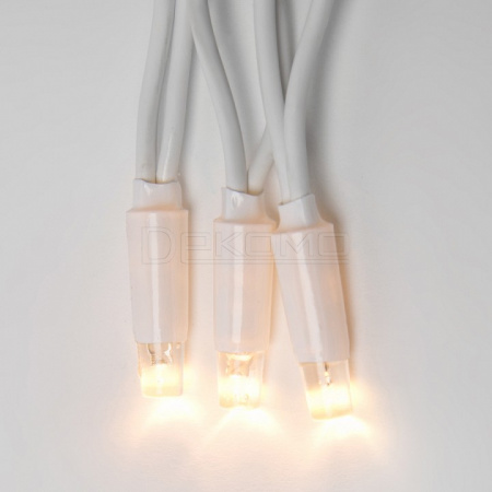 Ключевые особенности: эффект мерцания, теплый белый свет, 120 светодиодов, соединяемая конструкция, белый провод, степень защиты IP67, длина 10 метров, возможность наращивания, универсальность применения.