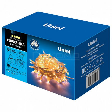 Позвольте светодиодной гирлянде ULD-S1000-120/TWK WARM WHITE создать в вашем пространстве теплую и уютную атмосферу с помощью мягкого мерцающего света. Это идеальное решение для тех, кто ценит комфорт и стремится организовать приятное освещение как внутри помещений, так и на открытых площадках.