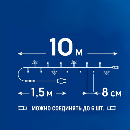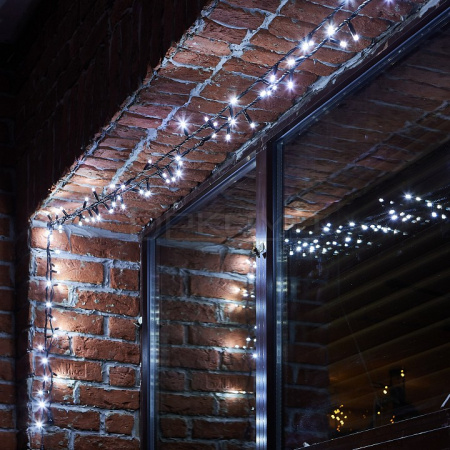 Ключевые особенности: эффект мерцания, чистый белый свет, 120 светодиодов, соединяемая конструкция, черный провод, степень защиты IP67, длина 10 метров, возможность наращивания, универсальность применения.