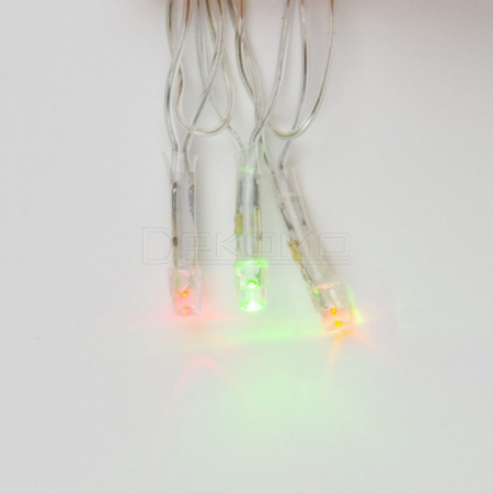 Гирлянда имеет длину 2,5 метра и оснащена 20 светодиодами, которые создают красочную игру света. Прозрачная проводка гармонично сочетается с разноцветными огоньками, делая гирлянду универсальной для различных декоративных решений. Работает от сети 220В через сетевой кабель длиной 1,3 метра.