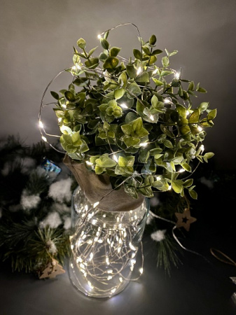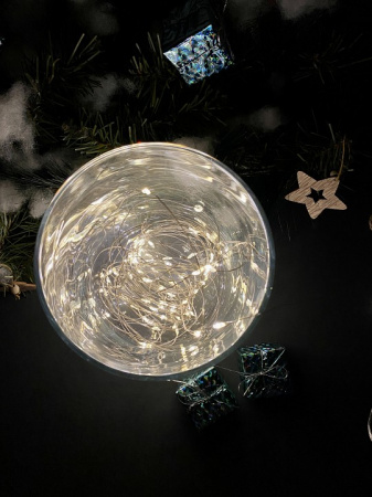 Преимущества выбора. Теплый свет создает комфортную и расслабляющую атмосферу. Увеличенная длина в 10 метров позволяет использовать гирлянду для масштабных композиций. 100 светодиодов обеспечивают равномерное освещение. Медный провод гарантирует долговечность конструкции. Питание от батареек дает возможность размещать гирлянду в любом месте без привязки к розетке.