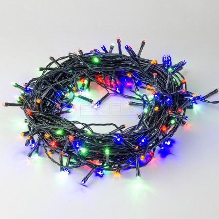 Зеленый провод гармонично сочетается с разноцветными огоньками, делая гирлянду универсальной для различных декоративных решений. Работает от сети 220В через сетевой кабель, степень защиты IP20 обеспечивает безопасное использование в помещениях. Благодаря продуманной конструкции гирлянду легко разместить на любой поверхности, создавая неповторимые световые композиции.