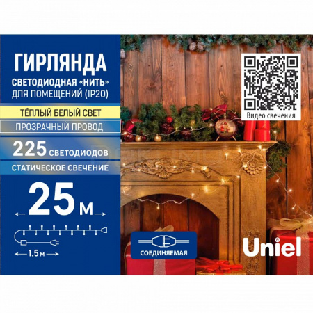 Представляем уютную светодиодную гирлянду ULD-S2500-225/STK WARM WHITE от бренда Uniel — идеальное решение для создания теплой и комфортной атмосферы в вашем доме. Эта модель с мягким теплым белым свечением станет изысканным украшением любого интерьера, наполнив пространство приятным, расслабляющим сиянием.