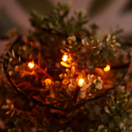 Работает от сети 220В, степень защиты IP20 обеспечивает безопасное использование гирлянды в помещениях. Благодаря продуманной конструкции ее легко разместить на любой поверхности, создавая уникальные композиции. Теплые янтарные оттенки особенно эффектно смотрятся в вечернее время, создавая уютную и расслабляющую атмосферу.