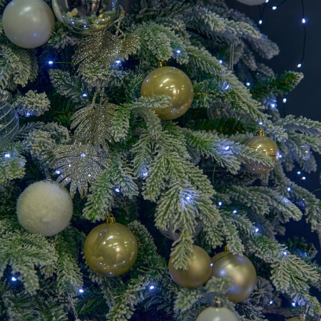 Гирлянда оснащена четырьмя тысячами современных светодиодов, излучающих равномерный белый свет без мерцания. Зеленый провод не только эстетично выглядит, но и позволяет использовать гирлянду в масштабных дизайнерских проектах. Конструкция разработана с учетом длительной эксплуатации при различных температурных режимах. Степень защиты IP20 гарантирует безопасное использование внутри помещений.
