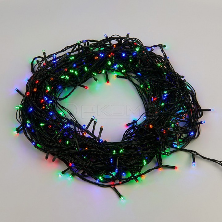 Гирлянда впечатляет своими впечатляющими размерами: длина составляет 50 метров, а количество светодиодов достигает 500 штук. Зеленый провод гармонично сочетается с переливами разноцветных огоньков, создавая эффектную и праздничную композицию. Степень защиты IP20 гарантирует безопасное использование гирлянды в помещениях.