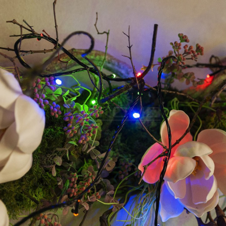 Зеленый провод гармонично вписывается в любой декор, что делает гирлянду отличным выбором для оформления как классических, так и современных пространств. Используйте ее для украшения новогодних елей, оформления оконных проемов, создания световых композиций в гостиной или на праздничном столе.