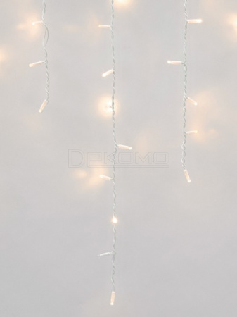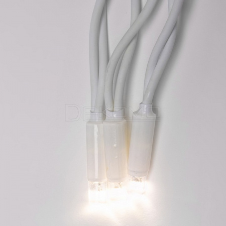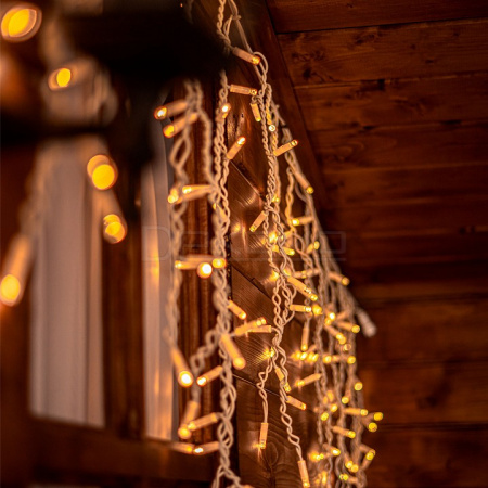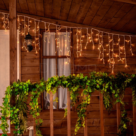 Гирлянда безопасна для использования в уличных условиях. Компактные размеры и продуманная конструкция позволяют легко монтировать гирлянду на различные поверхности. Гирлянду можно соединять в одну линию до 6 штук с помощью коннекторов, которые входят в комплект. Гирлянда с эффектом мерцания, каждый 5-й светодиод мигает остальные светят статически.