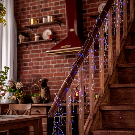 Прозрачный провод гармонично сочетается с любым интерьером, делая акцент именно на световом эффекте. Гирлянда безопасна для использования как помещениях, так и в уличных условиях. Компактные размеры и продуманная конструкция позволяют легко монтировать гирлянду на различные поверхности. Гирлянду можно соединять в одну линию до 3 штук с помощью коннекторов, которые входят в комплект. Гирлянда с эффектом мерцания, каждый 5-й светодиод мигает, остальные светят статически.