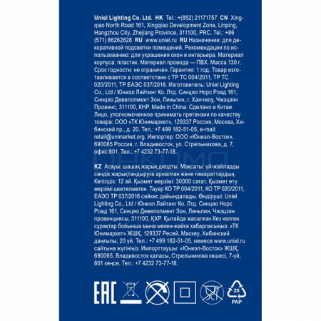 Качественная гирлянда электрическая торговой марки Uniel применяется для создания интересной световой иллюминации в жилых домах, в офисах и административных зданиях, в школах и детских садах, светового оформления витрин, балконов, оконных проемов, добавляет уюта и гармонии в любое пространство. Подходит для различных тематических мероприятий или повседневного оформления помещения.
