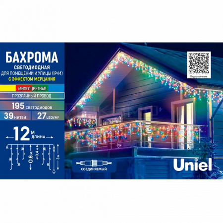 Качественная гирлянда электрическая торговой марки Uniel применяется для создания интересной световой иллюминации в жилых домах, в офисах и административных зданиях, в школах и детских садах, светового оформления витрин, балконов, оконных проемов, гаражей, помещений под навесом, добавляет уюта и гармонии в любое пространство. Подходит для различных тематических мероприятий или повседневного оформления помещения.