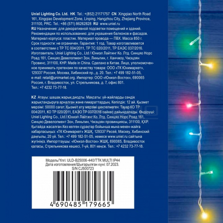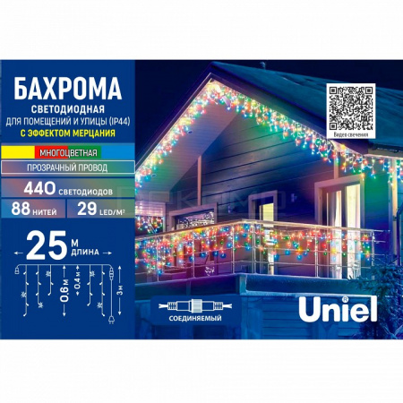 Качественная гирлянда электрическая торговой марки Uniel применяется для создания интересной световой иллюминации в жилых домах, в офисах и административных зданиях, в школах и детских садах, светового оформления витрин, балконов, оконных проемов, гаражей, помещений под навесом, добавляет уюта и гармонии в любое пространство. Подходит для различных тематических мероприятий или повседневного оформления помещения.