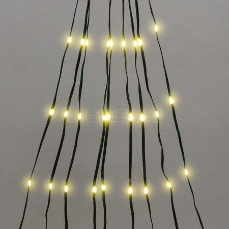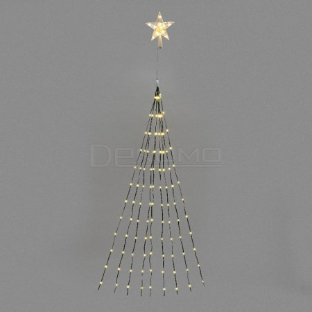 светодиодная гирлянда Занавес:динамическое свечение, количество режимов контроллера: 8 шт, подходит для елок высотой 180 и 210 см. Все нити гирлянды скреплены у основания светодиодной фигуры – звезды, которая с легкостью размещается на вершине праздничного дерева. Для создания идеальной композиции останется только распределить нити по хвойной поверхности дерева.