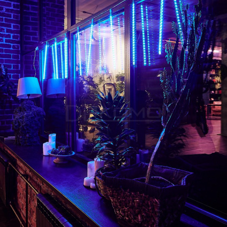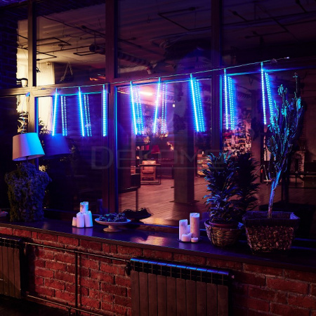 Погрузитесь в атмосферу волшебной ночи с фигурным светодиодным занавесом "Падающие звезды"! Этот изящный занавес светодиодный размером 2х0,5 метра создает эффект звездного дождя благодаря 385 синим светодиодам на 8 подвесах. Мерцающее холодное свечение напоминает танец метеоров в ночном небе, даря пространству загадочность и современную элегантность.