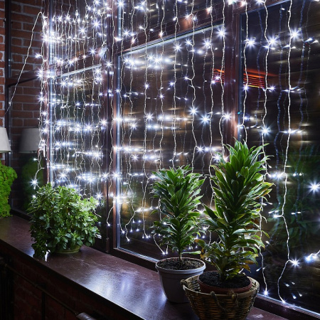 Погрузитесь в атмосферу зимней сказки с белым светодиодным занавесом Uniel! Этот великолепный световой занавес размером 3х2 метра создает эффект мерцающих снежинок благодаря 240 белым светодиодам. Динамичное холодное свечение наполнит пространство атмосферой зимней магии и праздничной свежести, создавая идеальную картину новогоднего волшебства.