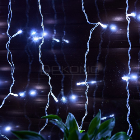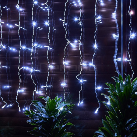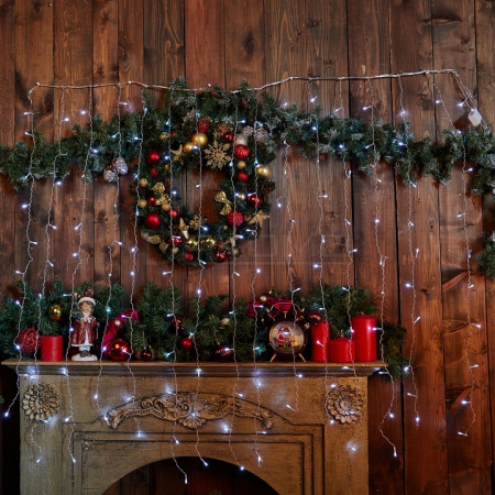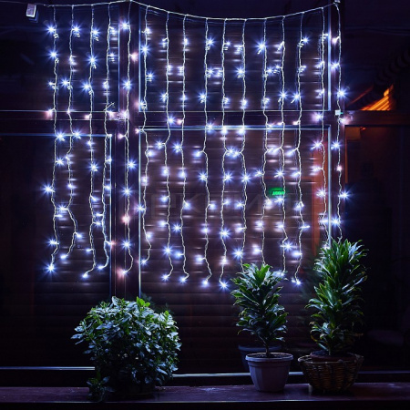 Занавес светодиодный с контроллером предлагает выбор режимов работы — от ровного статичного свечения до динамичного мерцания, напоминающего танцующие снежинки. Прозрачный провод длиной 1,5 метра обеспечивает аккуратную установку и сохраняет эстетику интерьера. Этот занавес световой легко превратит любое помещение в волшебное зимнее царство.