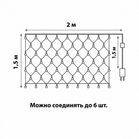 Прямоугольная сетка размером 2х1,5 метра с 288 светодиодами создает яркое статичное свечение, идеально подходящее для современных праздничных инсталляций. Особенность модели — возможность соединения нескольких секций для создания масштабных композиций на фасадах, заборах или сценических конструкциях. Благодаря высокой степени защиты IP67, эта сетка полностью водонепроницаема и выдерживает любые погодные условия, что делает ее идеальной для профессионального уличного использования.