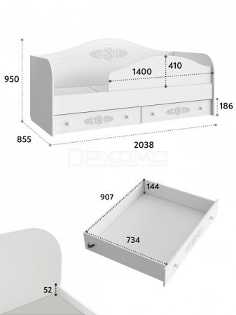 - основание - настил ДСП, 2 ящика для белья