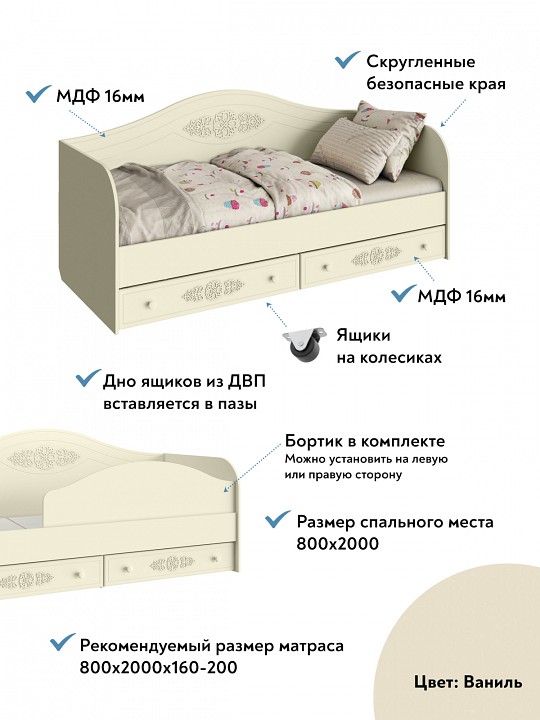 - основание - настил ДСП, 2 ящика для белья