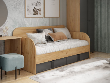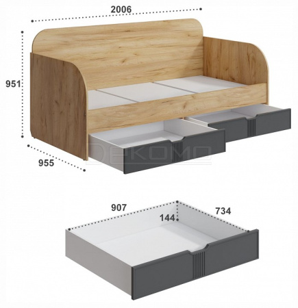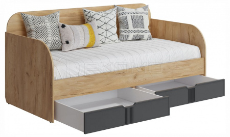 Кровать Эмилия ЭЛ-48 прекрасно впишется в интерьер спальни в современном стиле. Прямые линии фасадов понравятся ценителям минимализма в дизайне. Компактные размеры кровати позволяют установить ее в интерьере средней и малой площади. Корпус кровати изготовлен из качественного ЛДСП толщиной 16 мм, фасады выполнены из МДФ 16 мм. Размер спального места - 900х2000 мм. Модель оснащена двумя выкатными ящиками. Рекомендуемый размер матраса в мм: 900х2000х160-200. Основание кровати ЛДСП 16 мм. Кровать оснащена защитным бортиком, который может крепиться к любой боковой стенке.