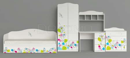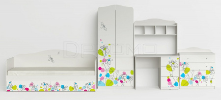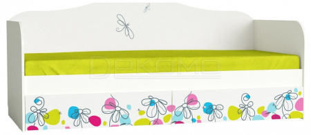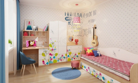 Кровать с выдвижными ящиками из коллекции мебели для детской комнаты "Цветы". Производство Россия. Изготовлена из ЛДСП с УФ печатью. Направляющие на выдвижных ящиках шариковые полного выдвижения. Основание настил из ЛДСП Е1.