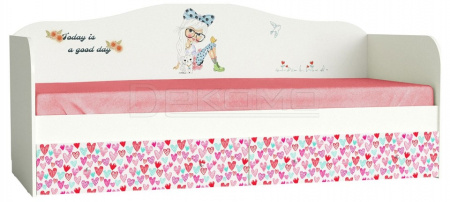 Кровать с выдвижными ящиками из коллекции мебели для детской комнаты "Девочки". Производство Россия. Изготовлена из ЛДСП с УФ печатью. Направляющие на выдвижных ящиках шариковые полного выдвижения. Основание настил из ЛДСП Е1.