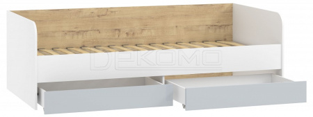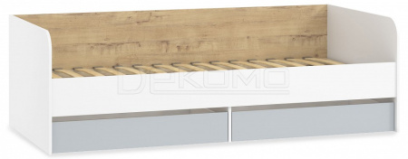 Современная модель кровати с основанием ламели и спальным местом 2000x900 мм. Оборудована вместительными ящиками, в которых можно хранить бельё.