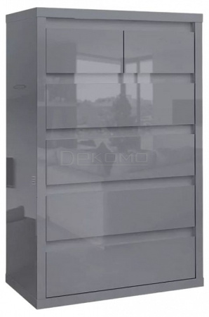 Корпус и фасады изготовлены из ламинированной древесностружечной плиты Серый Асфальт толщиной 38 и 16 мм. Торцевые поверхности закрыты кромками ABS. Экологически безопасное ЛДСП с классом эмиссии летучих веществ Е1.
