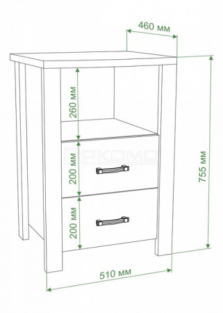 - 1 полка, 2 ящика