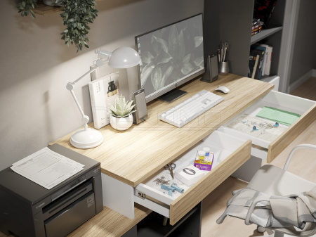 Стол письменный Скайлайт СЛ-20К станет отличной основой для создания комфортного рабочего пространства школьника или студента. Длина столешницы 1200 мм позволит с комфортом заниматься учебой или творчеством. Два выдвижных ящика позволят удобно хранить канцелярские принадлежности. Они расположены под столешницей и имеют телескопические направляющие полного выдвижения без доводчиков.