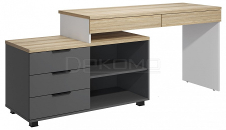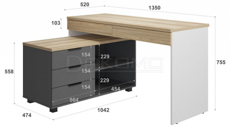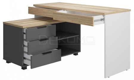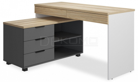 Стол письменный угловой Скайлайт СЛ-21К станет отличной основой для создания комфортного рабочего пространства школьника или студента. Длина столешницы 1350 мм позволит с комфортом заниматься учебой или творчеством. Габариты стола позволят разместить на нем ноутбук или компьютер с широкоформатным монитором и другие периферийные устройства. Два выдвижных ящика позволят удобно хранить канцелярские принадлежности, они расположены под столешницей и имеют телескопические направляющие полного выдвижения без доводчиков. Частью стола является тумба с тремя выдвижными ящиками и двумя открытыми нишами для хранения, расположение тумбы только с левой стороны. Письменный стол может быть собран как в угловом, так и в прямом исполнении - для обоих вариантов в тумбе предусмотрены технологические отверстия.