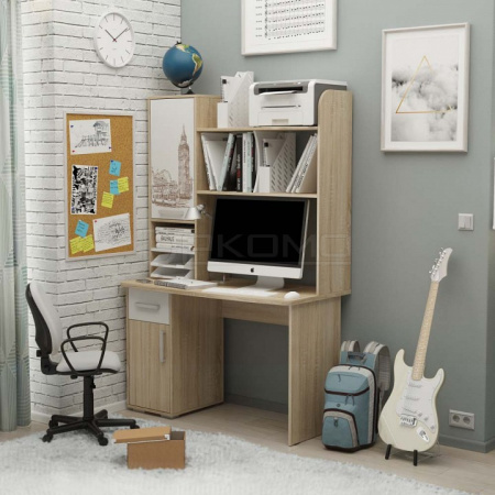 Письменный стол Лайт-1 может быть дополнен функциональной надстройкой и стеллажом Лайт-1.