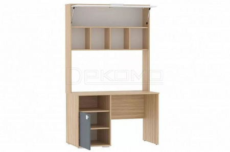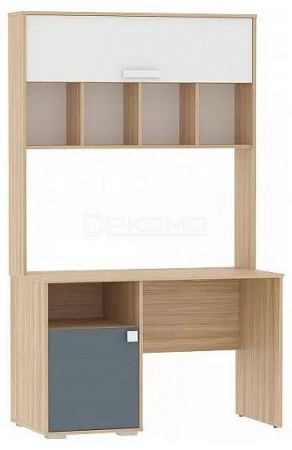 Стол письменный с тумбой за распашной дверцей и открытой полкой, дополненный надстройкой для более удобной рабочей обстановки.