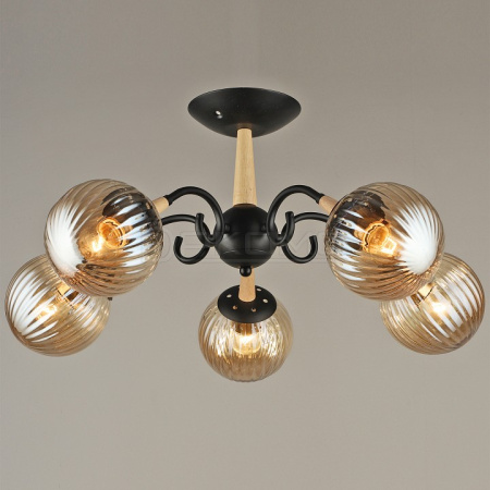 Люстра на штанге 04886-0.3-05 BK+WOOD