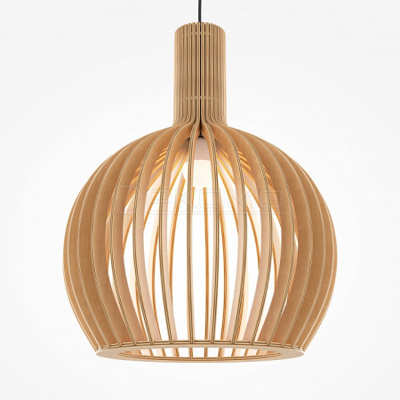 Абажур – 5-ти слойная фанера бежевого оттенка, покрытая специальным лаком. Тканевый черный провод. Регулируемая высота. Простые лаконичные форма, природные материалы. Цоколь E27.
