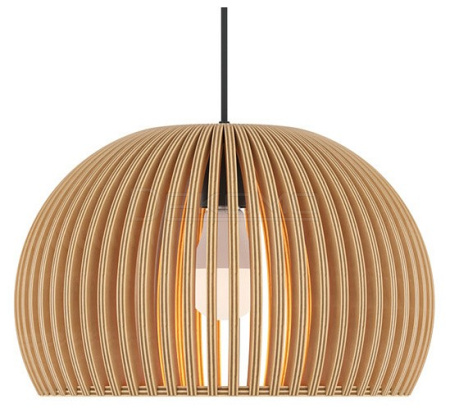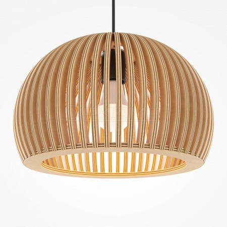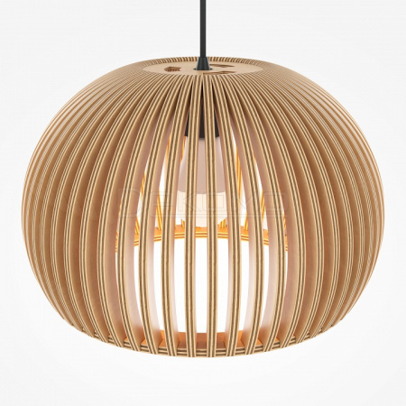Абажур – 5-ти слойная фанера бежевого оттенка, покрытая специальным лаком. Тканевый черный провод. Регулируемая высота. Простые лаконичные форма, природные материалы. Цоколь E27.