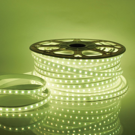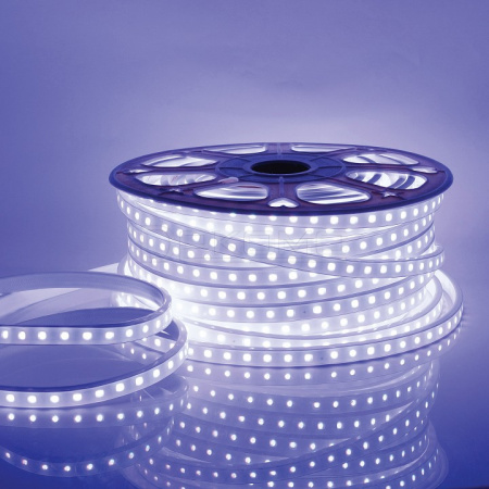 гибкая лента светодиодная на катушке 50 м на двухслойной белой основе:тип светодиодов: SMD5050, размер светодиодов: 5.0х5.0 мм, кратность резки: 1 м, белая ПВХ-оболочка с прозрачным рассеивателем