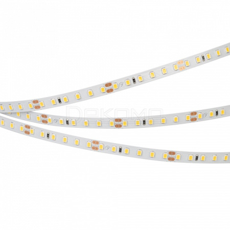 Светодиодная лента RT-A120, открытая. Светодиоды 2835, 120 шт/м (600 шт на 5 м), белая плата, ширина 8 мм, скотч 3M. Цвет ТЁПЛЫЙ 3500 K, цветопередача CRI 95..98, угол 120°. Питание 24V, мощность 14.4 Вт/м (72 Вт на 5 м). Размеры 5000x8x1.5 мм. Мин. отрезок 50 мм, 6 светодиодов. Цена за 1 м.