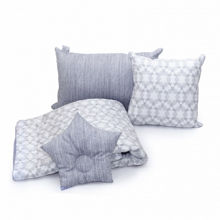 Маленькая звездочка с удовольствием посчитает звезды на своей подушке перед сном. Это занятие легко успокоит малыша и убаюкает. А если кроха захочет послушать вашу колыбельную песенку, то туманный меланж обратной стороны подушки создаст атмосферу умиротворения и покоя.