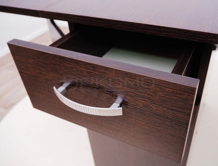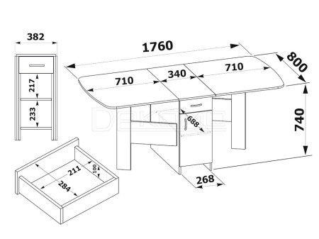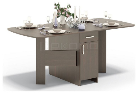 Многофункциональный стол-книжка с ящиками и полочками. Полезный элемент в квартире или загородном домике. В собранном виде может использоваться в качестве тумбы (ширина всего 382 мм). А при необходимости модель превращается в полноценный обеденный стол шириной 1760 мм.