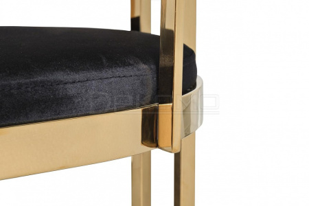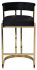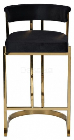 Дизайнерский барный стул дополнит интерьер роскошной кухни или столовой с барной стойкой, а также концептуального заведения в современном стиле или стиле ар-деко. Прекрасный высококачественный велюр насыщенного черного цвета создает беспроигрышный ансамбль с золотой металлической опорой из полированной стали. Прочная конструкция, мягкое широкое сиденье и подушка на спинке, подставка для ног и классическая высота сделают стул идеальным элементом и настоящей изюминкой вашего бара.