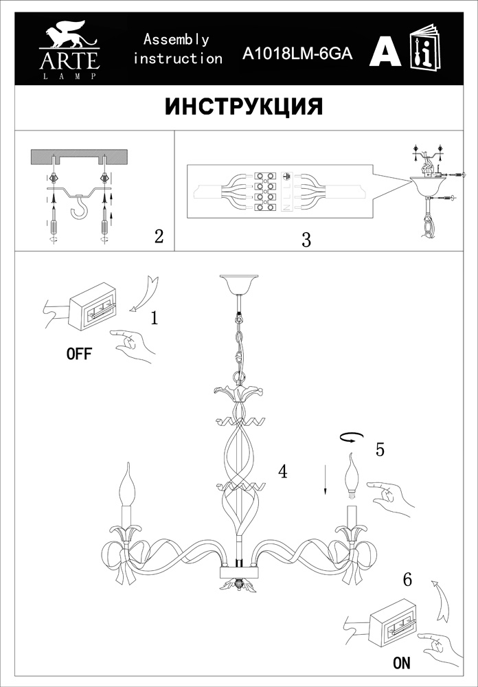 Подвесная люстра Olivia A1018LM-6GA