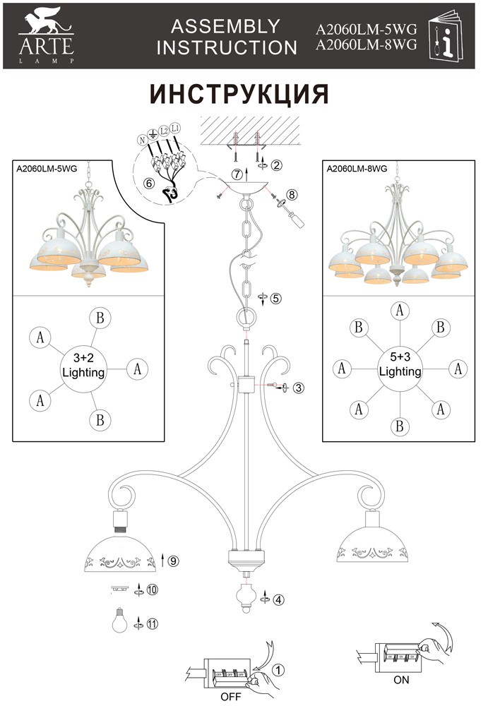 - Общее кол-во ламп: