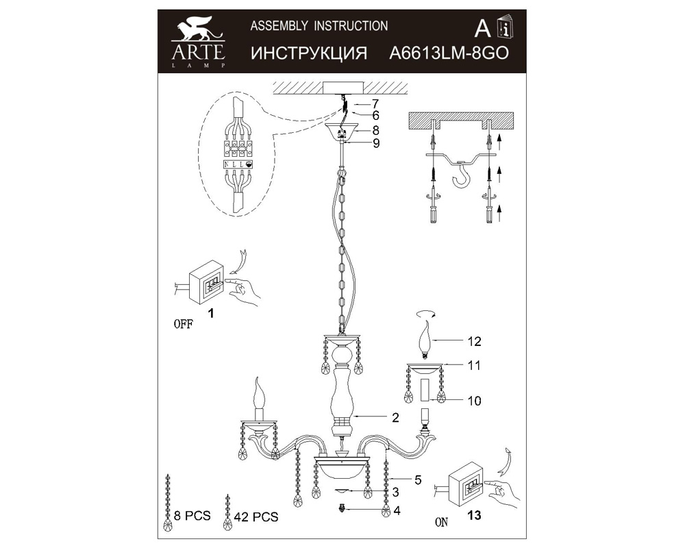 Подвесная люстра Contessa A6613LM-8GO