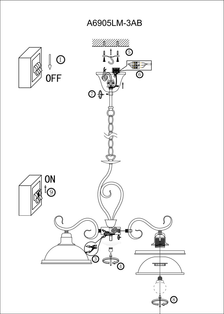 Подвесная люстра Safari A6905LM-3AB