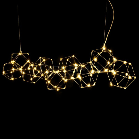 Дизайнерская люстра Bjork small в линию без вставок ручной работы будет эффектно смотреться в современной обстановке квартиры, дома, офиса, кафе, отеля. Оригинальная конструкция из многогранников выполнена из сегментов, для изготовления которых используются тонкие прутки прочной нержавеющей стали. В качестве источников света применяются светодиоды, что подчеркивает идеальную геометрию и создает мягкое рассеянное освещение. Лаконичное исполнение позволяет разместить такой светильник в любом помещении.