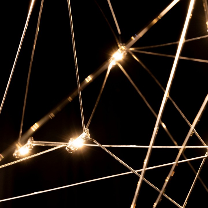 При взгляде на этот стильный подвесной светильник в воображении рисуются далекие созвездия. Очертания люстры Eternal напоминают далекие космические объекты, что отражает название модели. Яркие светодиоды сияют подобно звездам. Замысловатая геометрия каркаса завораживает. Дизайнерский светильник создается вручную из прочных прутков нержавеющей стали. Модель гармонирует с футуристичным и минималистичным окружением, подчеркивает оригинальность лофта.