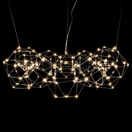 Оригинальный дизайнерский подвесной светильник Bjork small круглый без вставок – современная альтернатива классическим люстрам. Расположенные по окружности многогранники из прутков нержавеющей стали подсвечиваются яркими светодиодами. Конструкция подвешивается к потолку на тросах, длину которых можно регулировать. Покрытие металла может быть серебристого или золотистого оттенков. Люстра лаконичного дизайна гармонично смотрится в современном интерьере. Удачно сочетается со стилями хайтек и минимализм. Подходит для гостиных, столовых и холлов. Может располагаться над диваном или обеденным столом.