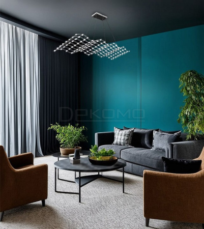 Необычная дизайнерская люстра Montserrat в форме волны создает ощущение мягкости и спокойствия. Плавные линии модели удачно гармонируют с обстановкой в стилистике, модерна, ар-деко. Контрастируют с лаконичностью и геометричностью минимализма и хай-тека, брутальностью лофта. Каркас подвесного светильника выполнен из прочных прутков нержавеющей стали, цвет которых может быть серебристым, золотистым или черным по желанию заказчика. Это позволяет подобрать вариант для конкретного окружения. Светодиоды на пересечениях линий подчеркивают очертания люстры, усиливая воздушность и легкость конструкции.